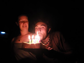 I was woken abruptly at about 6.30 by the sound of fireworks!! I don’t know who it was but after last nights antics I knew we would have some fun tonight. I went down to the bar for 7pm and was one of the last to arrive. Everyone sat round chatting and laughing while every now and then Michele went outside and let off some fireworks that had been bought by Stu for his birthday. Some of them were a bit lame with just a splutter and a fffffffft! But some of the others were loud and almost frightening! We were promised a good show later on by Michele and everyone sat down for dinner and a drink. Lana brought out a cat shaped birthday cake and a musical card for Michele and everyone sang the usual Happy Birthday, before he blew out the candles and cut up the cake for everyone to have a bit. Michele then went right around the group and gave everyone a big hug for giving him a great birthday treat.